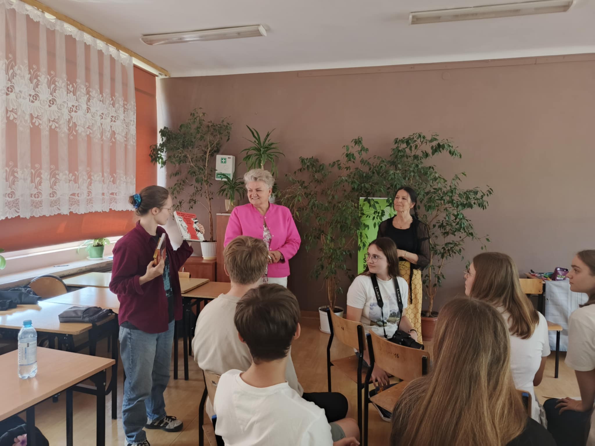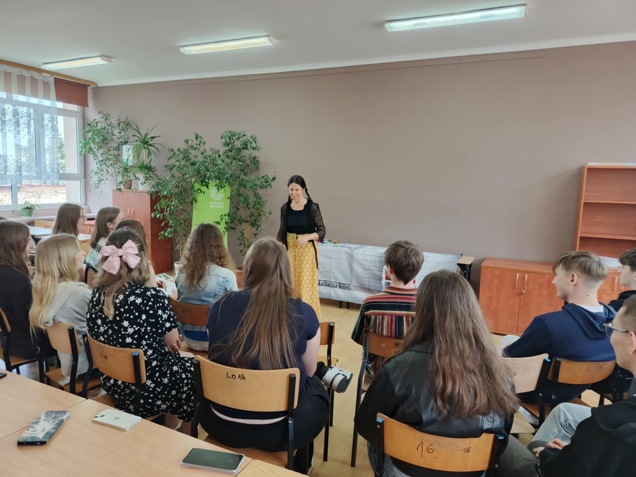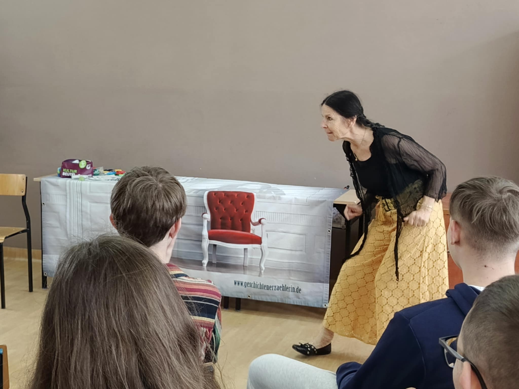 W czwartek 12 czerwca w naszej szkole odbyło się spotkanie,które stanowiło główną nagrodę w ramach zajęcia 1 miejsca w ogólnopolskim konkursie „Język baśni braci Grimm jako rap”. Konkurs został zorganizowany przez Instytut Goethego w Warszawie. Do Naszego Liceum prosto z Niemiec przybyła Katharina Ritter – opowiadaczka historii. W niezwykle przekonujący i ekspresywny sposób przedstawiła grupie uczniów kilka opowieści braci Grimm w języku niemieckim. Spotkanie stanowiło wspaniała okazję do praktycznego wykorzystania umiejętności porozumiewania się w języku niemieckim,ale i angielskim. W trakcie spotkania Naszym uczennicom: Oliwii Omaście, Karolinie Mijał, Zuzannie Ciszewskiej oraz Klaudii Wleciał wręczono dyplomy za zajęcie pierwszego miejsca w konkursie.Gratulujemy super pomysłu i odniesionego sukcesu.